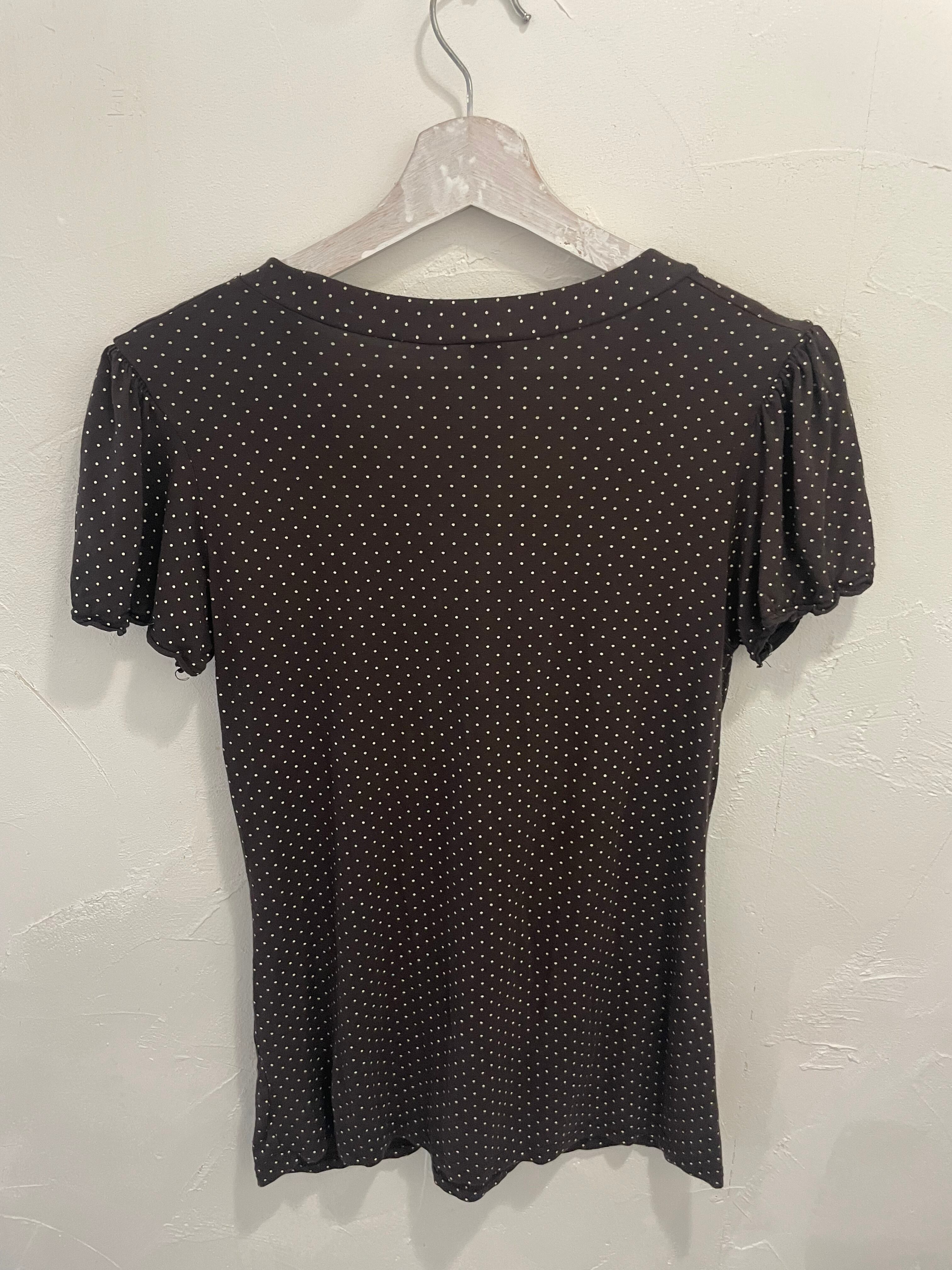 ☆dot pattern ribbon shirt☆brown